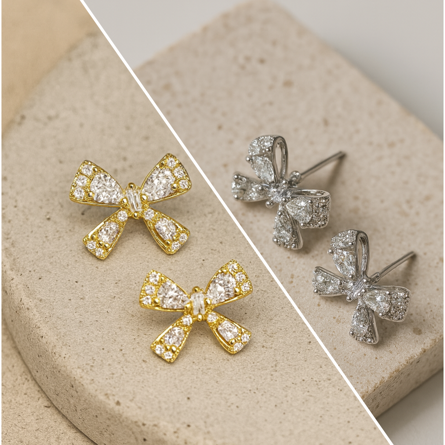 Elevate your everyday look with Dreamier’s Dual-Tone Bow Stud Earrings, featuring a perfect blend of gold and silver tones. Each pair is adorned with brilliant American Diamond stones, delicately set in a graceful bow design that adds sparkle to every movement. Crafted from premium anti-tarnish material, these earrings are lightweight, skin-friendly, and ideal for both day and night wear.
